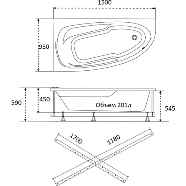 Акриловая ванна 1ACReal Мадрид Щ0000046658 правая 150x95 см на Х-каркасе белый купить