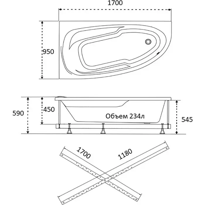 Акриловая ванна 1ACReal Мадрид Щ0000046660 левая 170x95 см на Х-каркасе белый