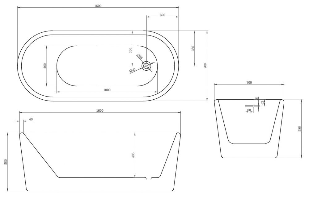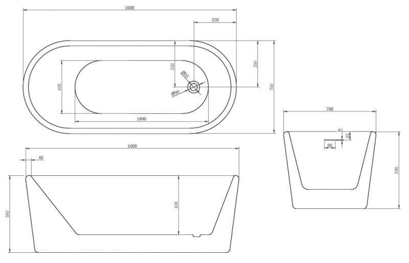 Акриловая ванна ABBER AB9272-1.6 160x70см белый
