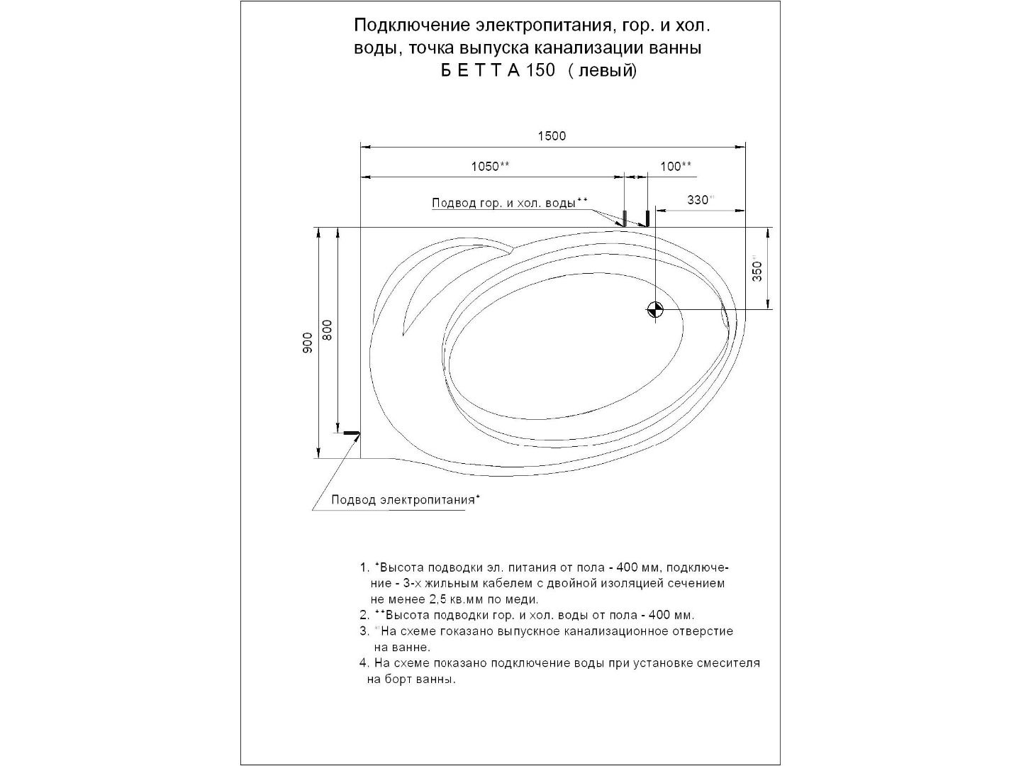 - Состав комплекта: Ванна, каркас, Слив-перелив