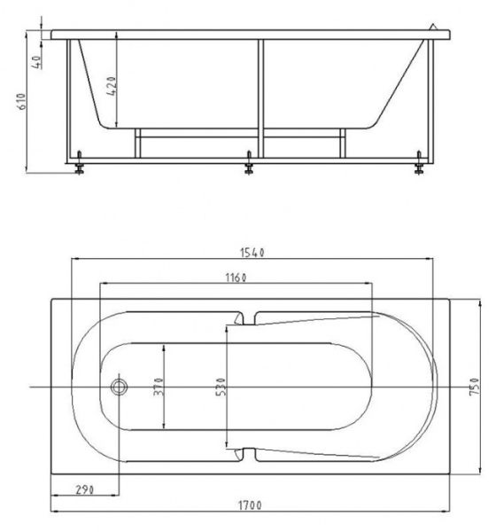 - Состав комплекта: Ванна, каркас, Слив-перелив