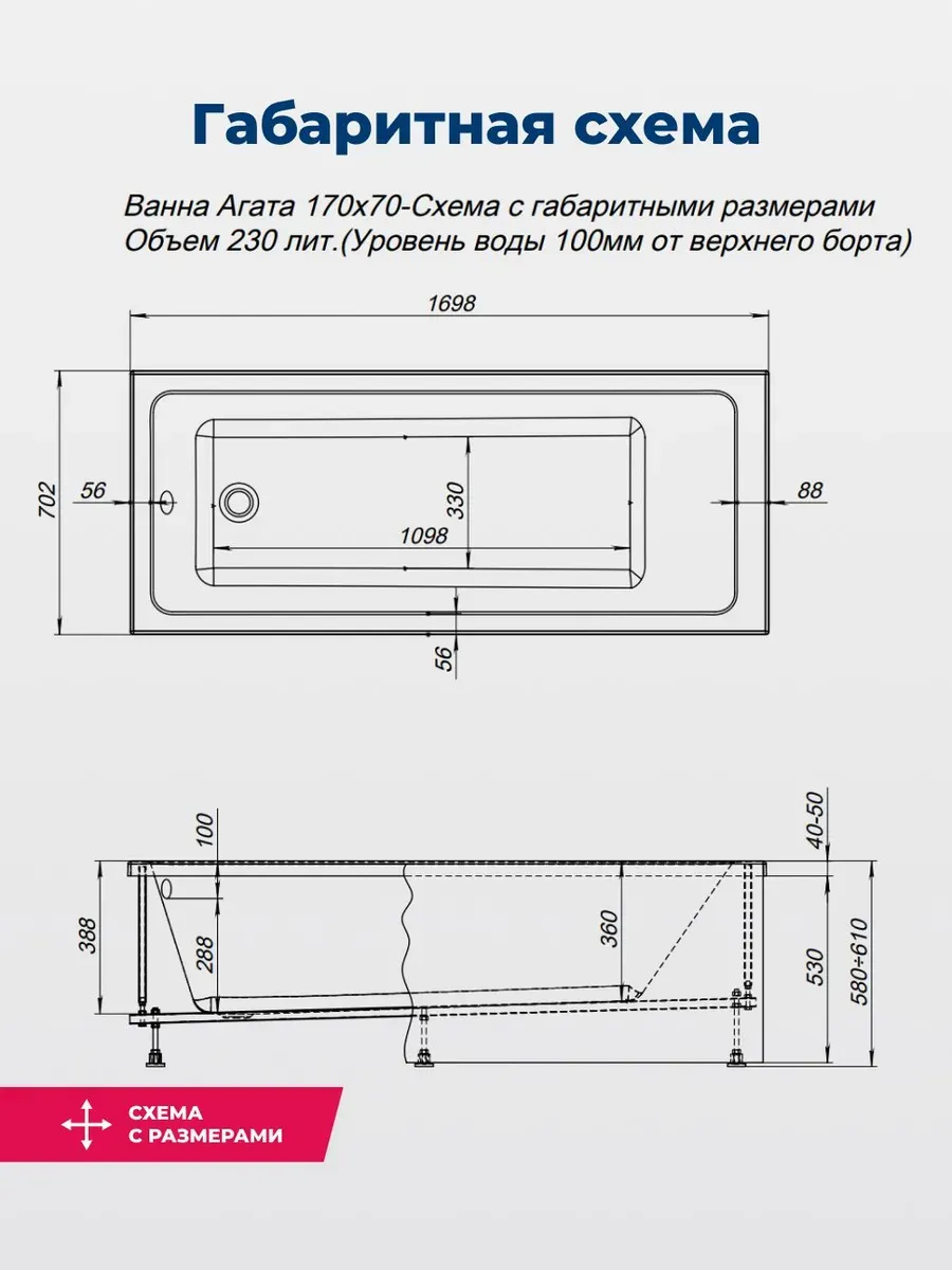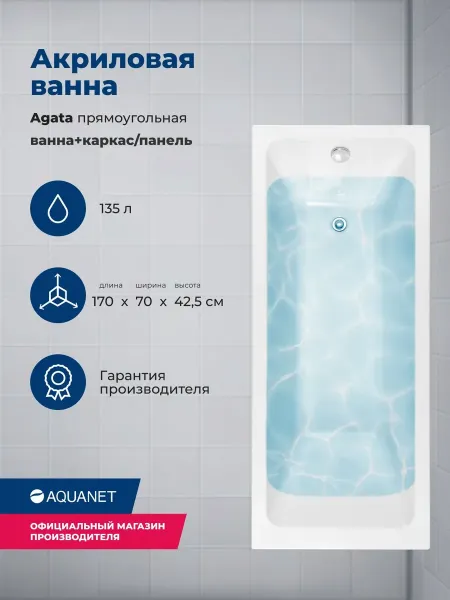 Акриловая ванна Aquanet Agata 365869 170x70 см с каркасом и фронтальной панелью