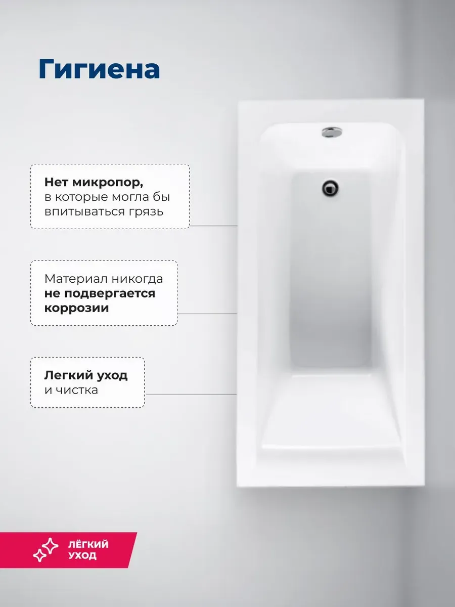 Акриловая ванна Aquanet создана с учетом растущего спроса на ванны простой прямоугольной формы в популярных размерах. Это модель с прямыми бортами и пологой спинкой, где соблюден идеальный угол для комфортного нахождения в ванне. Спинка плавно перетекает в бортик, поэтому релакс гарантирован даже без использования подголовника. Все линии ванны подчинены строгим законам эргономики. Чаша в этой ванне устроена таким образом, что для обозначенных размеров в ней достигнут максимально возможный внутренний объем, и это при комфортной глубине от слива ванны до борта. Ванна рассчитана на нагрузку свыше 300 кг, так что даже крепкий мужчина сможет без опаски находиться в ней. Двойной слой армирования обеспечивает надежность чаши, а закладные из МДФ-плит в местах наибольшей нагрузки усиливают эффект.