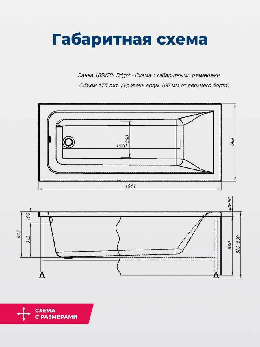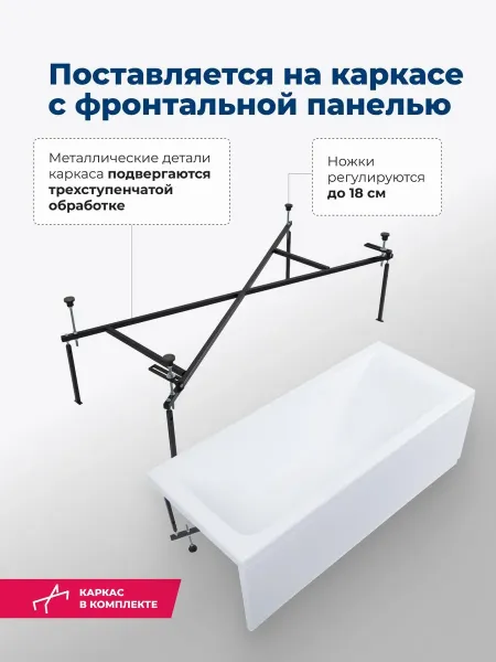 Акриловая ванна Aquanet Bright 347137 165x70 см с каркасом и фронтальной панелью купить