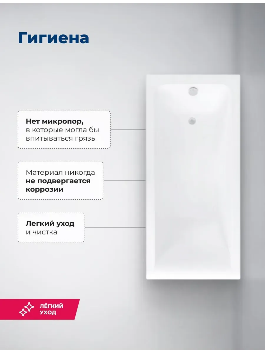 Акриловая ванна Aquanet создана с учетом растущего спроса на ванны простой прямоугольной формы в популярных размерах. Это модель с прямыми бортами и пологой спинкой, где соблюден идеальный угол для комфортного нахождения в ванне. Спинка плавно перетекает в бортик, поэтому релакс гарантирован даже без использования подголовника. Все линии ванны подчинены строгим законам эргономики. Чаша в этой ванне устроена таким образом, что для обозначенных размеров в ней достигнут максимально возможный внутренний объем, и это при комфортной глубине от слива ванны до борта. Ванна рассчитана на нагрузку свыше 300 кг, так что даже крепкий мужчина сможет без опаски находиться в ней. Двойной слой армирования обеспечивает надежность чаши, а закладные из МДФ-плит в местах наибольшей нагрузки усиливают эффект.