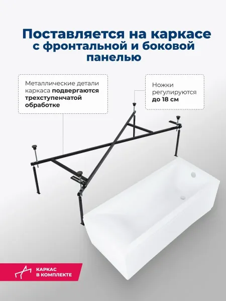 Акриловая ванна Aquanet Bright 347864 170x75 см с каркасом с боковой и фронтальной панелями