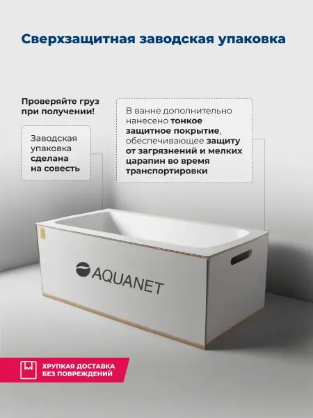 Акриловая ванна Aquanet создана с учетом растущего спроса на ванны простой прямоугольной формы в популярных размерах. Это модель с прямыми бортами и пологой спинкой, где соблюден идеальный угол для комфортного нахождения в ванне. Спинка плавно перетекает в бортик, поэтому релакс гарантирован даже без использования подголовника. Все линии ванны подчинены строгим законам эргономики. Ванна рассчитана на нагрузку свыше 300 кг, так что даже крепкий мужчина сможет без опаски находиться в ней. Двойной слой армирования обеспечивает надежность чаши, а закладные из МДФ-плит в местах наибольшей нагрузки усиливают эффект.