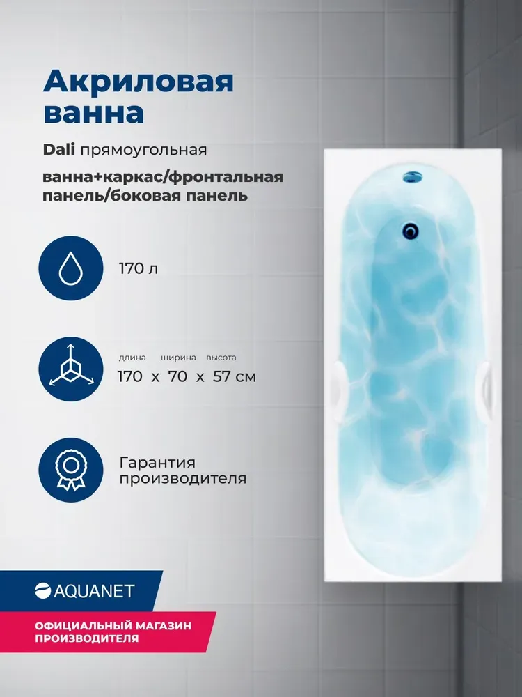 Акриловая ванна Aquanet Dali 347875 170x70 см с каркасом с фронтальной и боковой панелями купить