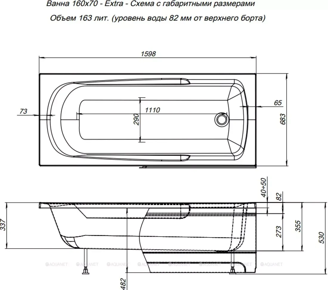 Акриловая ванна Aquanet Extra 254882 160x70 см