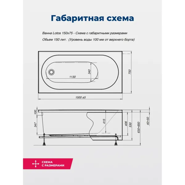 Акриловая ванна Aquanet Lotos 347156 150x75 см с каркасом и фронтальной панелью