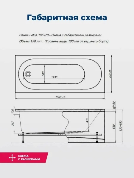 Акриловая ванна Aquanet Lotos 347157 165x70 см с каркасом и фронтальной панелью