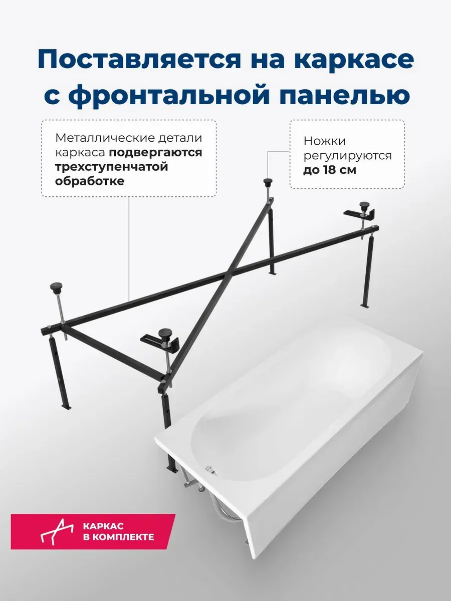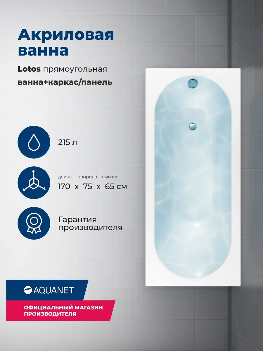Акриловая ванна Aquanet Lotos 347159 170x70 см с каркасом и фронтальной панелью купить