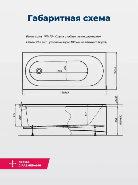 Акриловая ванна Aquanet Lotos 347159 170x70 см с каркасом и фронтальной панелью