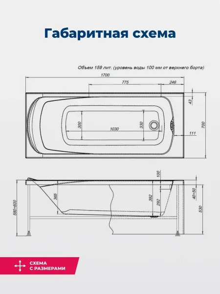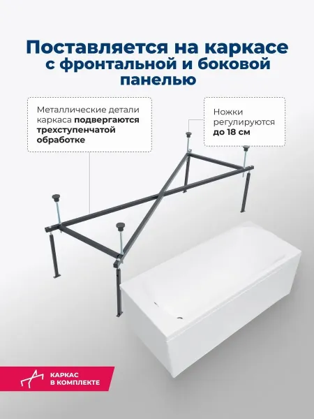 Акриловая ванна Aquanet Roma 347890 170x70 см с каркасом с боковой и фронтальной панелями