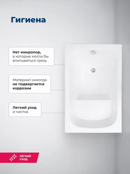 Акриловая ванна Aquanet Seed 100x70 - суперкомпактная модель, которая поместится даже в самом скромном по размерам помещении. В ширину она 70 см, а вот длину имеет необычно маленькую – всего 100 см. Принимать ванну взрослому человеку в ней можно только сидя. Впрочем, даже в таком положении при глубине 385 мм от слива ванны до борта в нее можно погрузиться всем телом. В ванну входит 90 литров воды. Маленькая ванна Seed по качеству не уступает своим более габаритным собратьям. Она сформована из сантехнического акрила европейского производства, покрыта для прочности двойным слоем стеклоровинга с установкой в местах наибольшей нагрузки закладных из МДФ-плиты. У нее широкие борта, которые подойдут для установки каскадного смесителя или которые можно использовать в качестве полочки для гигиенических средств. А поверхность чаши белоснежная и глянцевая, приятная на ощупь.