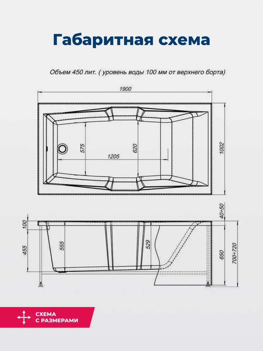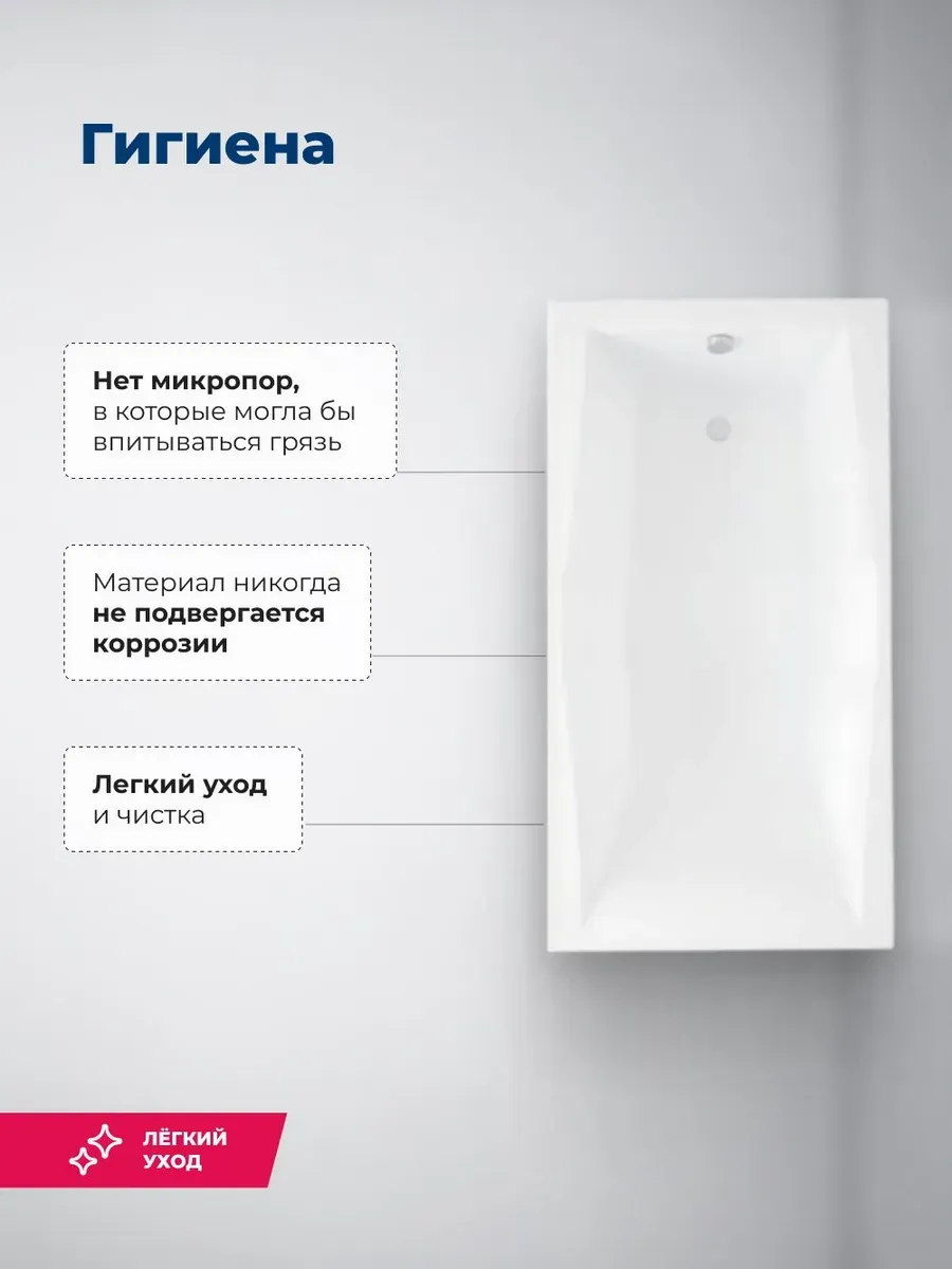 Вместительная акриловая ванна 190х100 Vega станет вашим любимым местом проведения досуга. Увеличенные габариты чаши позволят с комфортом насладиться принятием горячей расслабляющей ванны даже вдвоем, в такой ванной без преувеличения можно почувствовать себя как в бассейне. Прямоугольная форма позволит гармонично вписать эту модель как в классический, так и современный интерьер. Особые свойства акрила делают его идеальным материалом для изготовления ванн: он прочен, прост в уходе, непроницаем для бактерий, легко ремонтируется, поверхность чаши менее скользкая по сравнению с чугунными аналогами. Еще одно важное преимущество акриловой ванны заключается в ее теплоемкости: вода здесь намного дольше остается горячей.