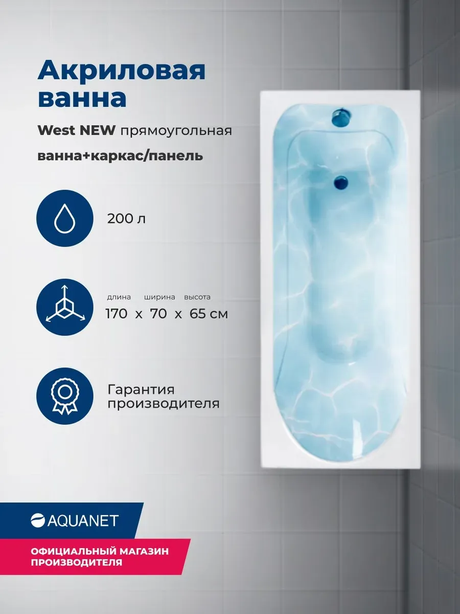 Акриловая ванна Aquanet West 347181 170x70 см с каркасом и фронтальной панелью купить