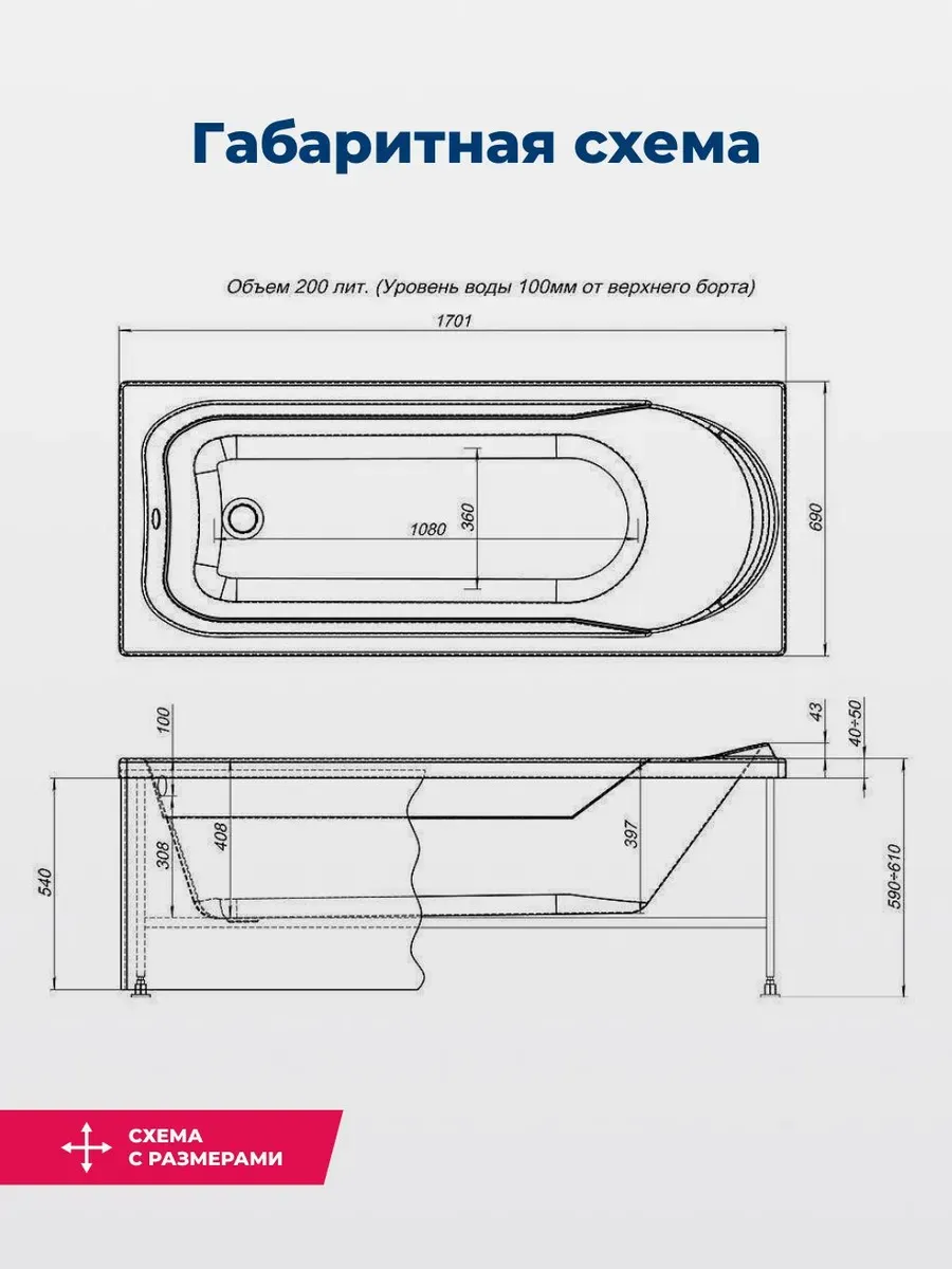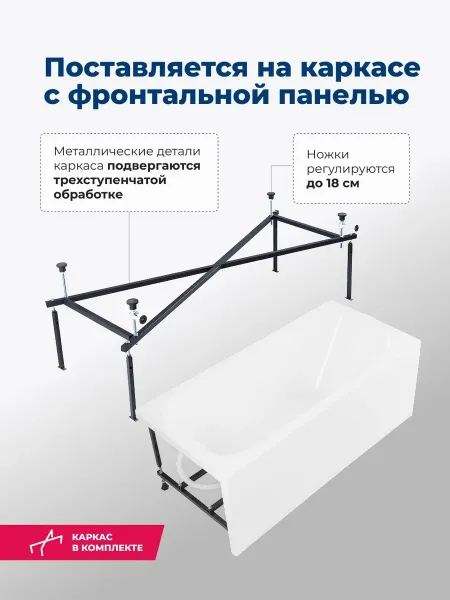 Акриловая ванна Aquanet West 347181 170x70 см с каркасом и фронтальной панелью