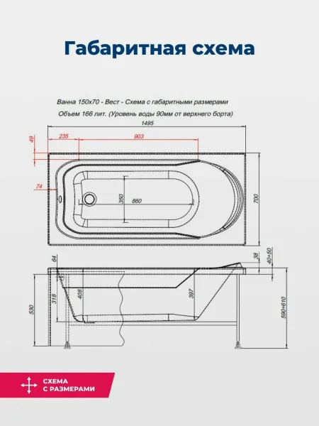 Акриловая ванна Aquanet West 347900 150x70 см с каркасом с фронтальной и боковой панелями