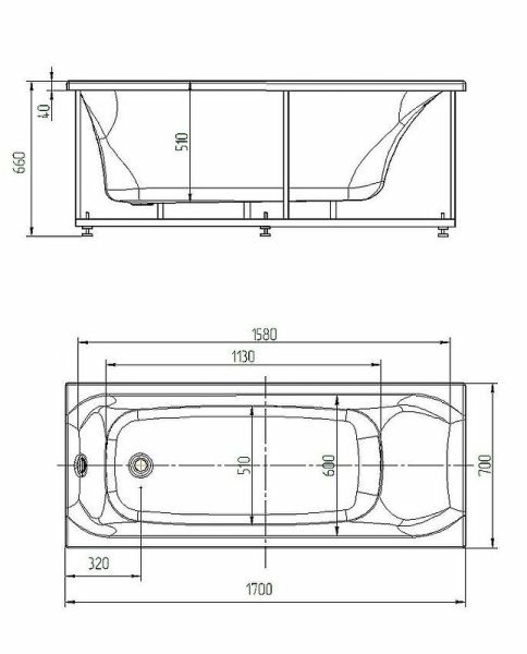- Ванна устанавливается на каркас, который поставляется в комплекте
