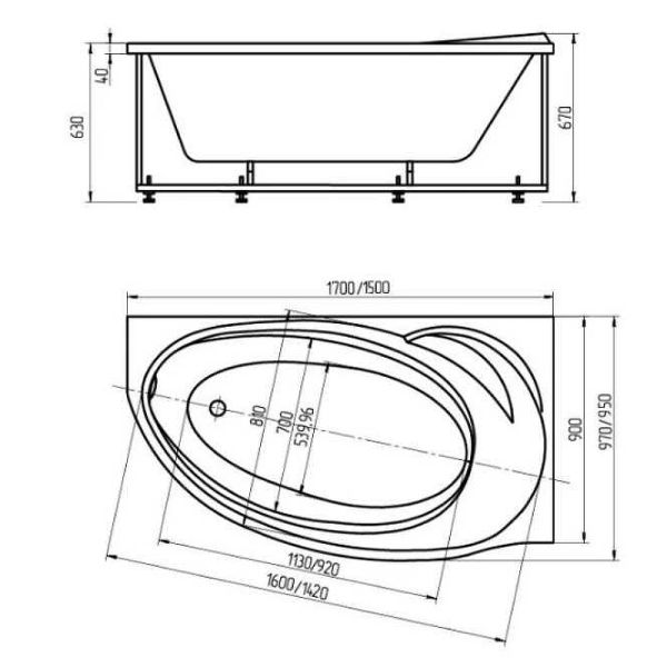 - Ванна устанавливается на каркас, который поставляется в комплекте