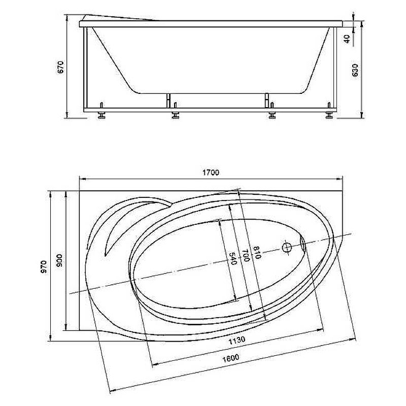 - Ванна устанавливается на каркас, который поставляется в комплекте