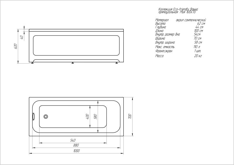 Описание:Габариты (Д Ш), см: 100х70Высота с опорой, см: 62Объем, л: 110Форма: прямоугольнаяМонтаж: пристеннаяРасположение перелива: стандартноеДиаметр слива ванны, см: 5,2Материал: 100% литьевой акрилЦвет: белыйГарантия: 20 летСтрана: РоссияВид опоры: каркас сборно-разборный металлический (шпильки) или опорная конструкция (ножки), приобретается отдельноЭкран: фронтальный и боковой, приобретаются отдельноСлив-перелив: нет, приобретается отдельноНескользкая поверхность