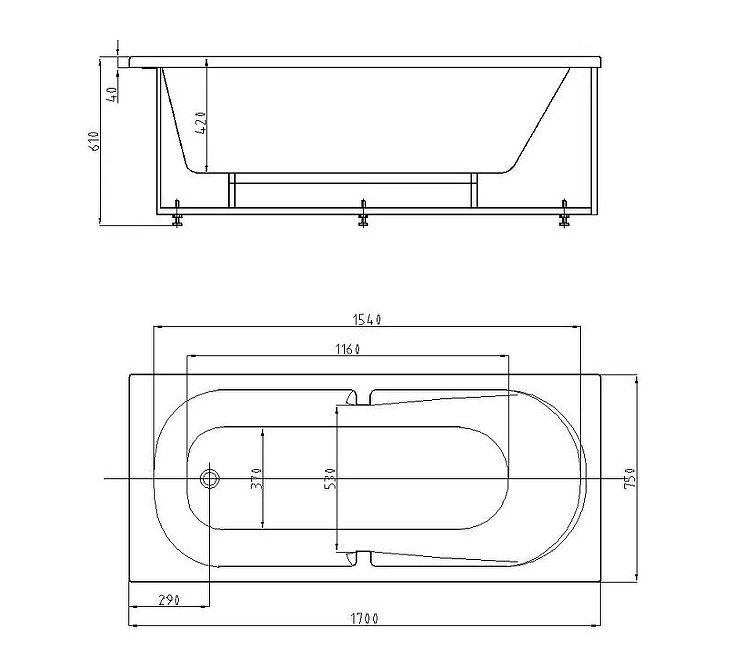 - Ванна устанавливается на каркас, который поставляется в комплекте
