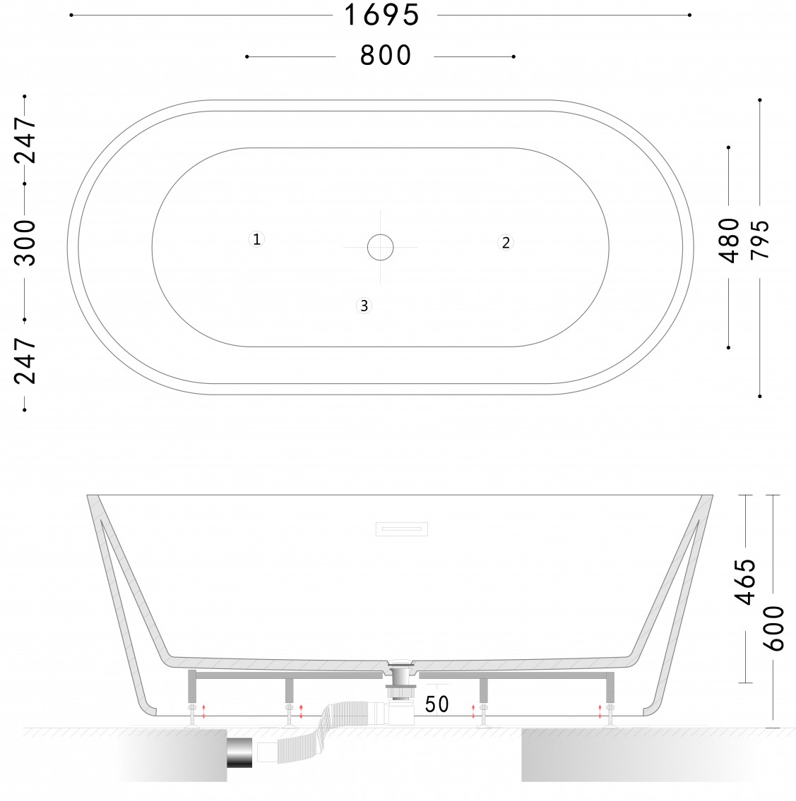 Акриловая отдельностоящая ванна, изготовленная из 100% литьевого акрила, имеет глянцевую, непористую поверхность, что препятствует развитию бактерий и грязи.