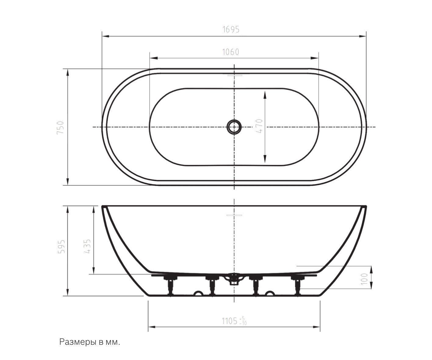 Акриловая отдельностоящая ванна, изготовленная из 100% литьевого акрила, имеет глянцевую, непористую поверхность, что препятствует развитию бактерий и грязи.