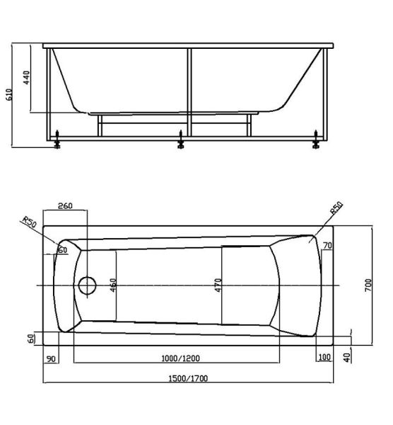 Акриловая ванна AZARIO ENRICA AV.0030150 прямоугольная 150*70