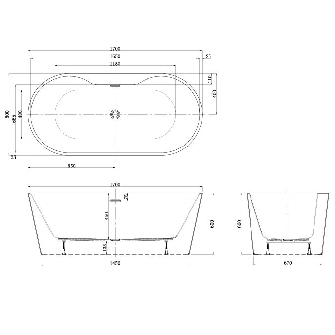 Акриловая ванна Azario BRISTOL BRI17080D 1700х800х580 свободностоящая