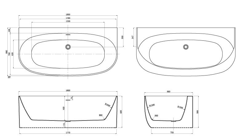 Акриловая ванна Azario Cambridge CAM18090 пристенная 1800X880X580