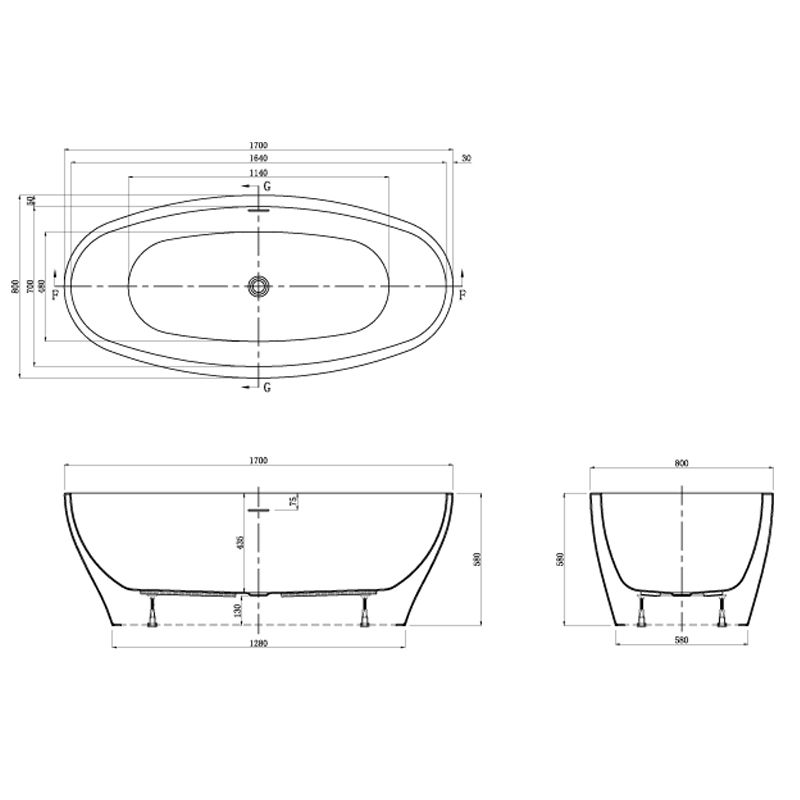 Акриловая ванна Azario CRANSTON CRA17080 свободностоящая 1700x800x580