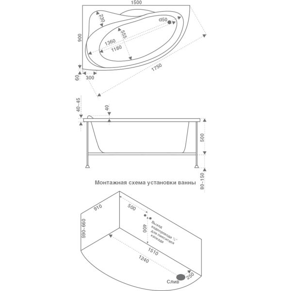 Акриловая ванна Azario Галант ГАВ0001 150х90 купить