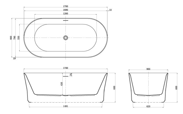 Aкриловая ванна AZARIO KENSTON KEN17080 свободностоящая 1700х800х600