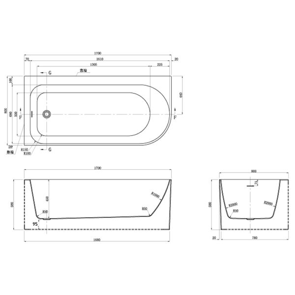 Акриловая ванна Azario LUTON LUT17080 L пристенная 1700x800x580