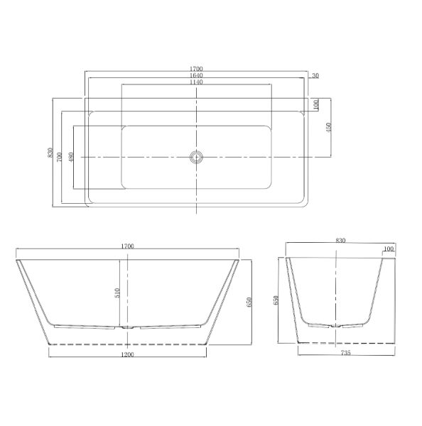 Акриловая ванна Azario OXFORD OXF17083 пристенная 1700х830х650