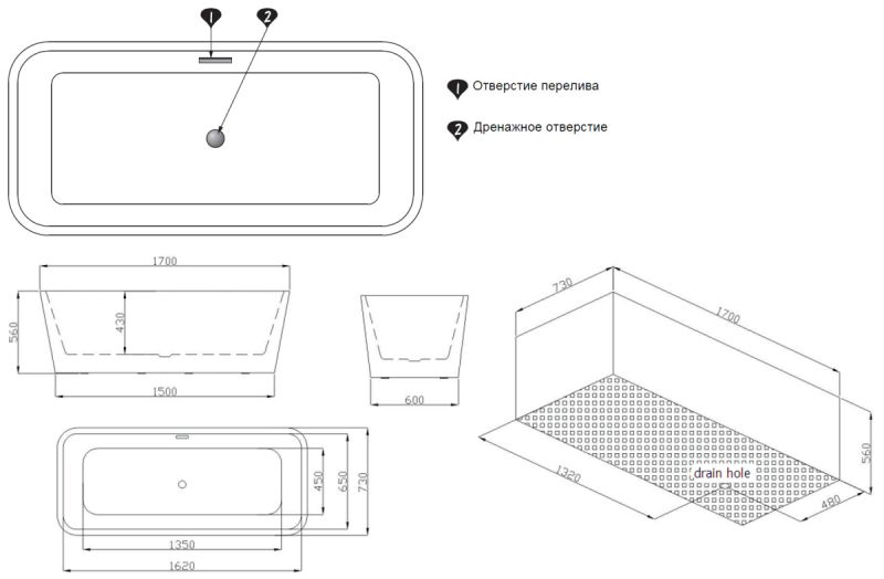 Акриловая ванна AZARIO WALESA AZ-M702S 1700х730х560
