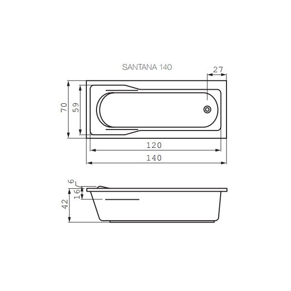 Акриловая ванна Cersanit SANTANA 140х70 купить