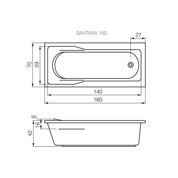 Акриловая ванна Cersanit SANTANA 160х70