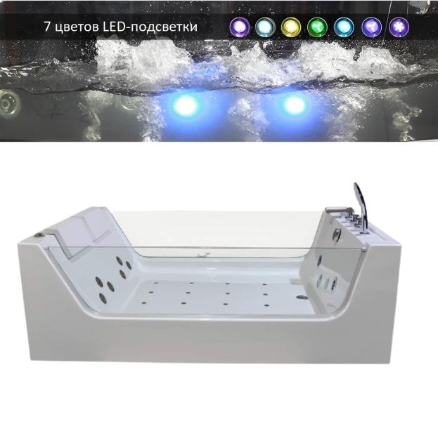Акриловая гидромассажная ванна (джакузи) Ceruttispa C-454А (1700х1200х580), 6 гидромассажных форсунок в зоне спины, 2 в боковой зоне, 12 аэромассажных форсунок, смеситель, 2 подголовника, хромотерапия, с датчиком сухого пуска.Размер: 1700x1200x580 ммОснащение:Гидромассажные форсунки : 6 штук в зоне спины + 2 в боковой зоне.