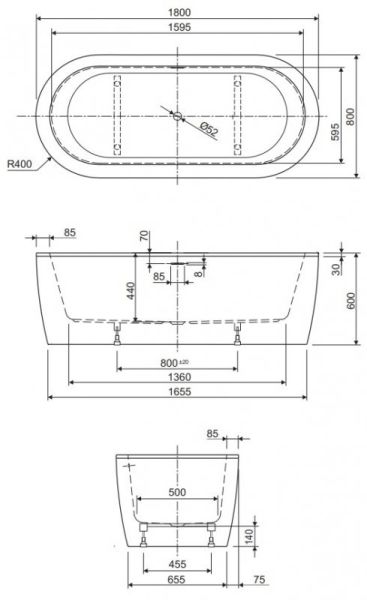 Акриловая ванна Cezares Slim Central 180x80см белый SLIM CENTRAL-180-80-60-W37-SET