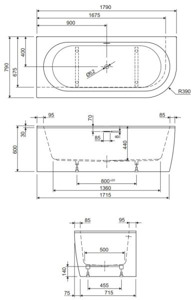 Фронтальная панель белаяМонтаж: пристенная угловая