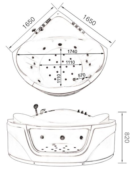 - аэромассаж, 17 форсунок с подсветкой