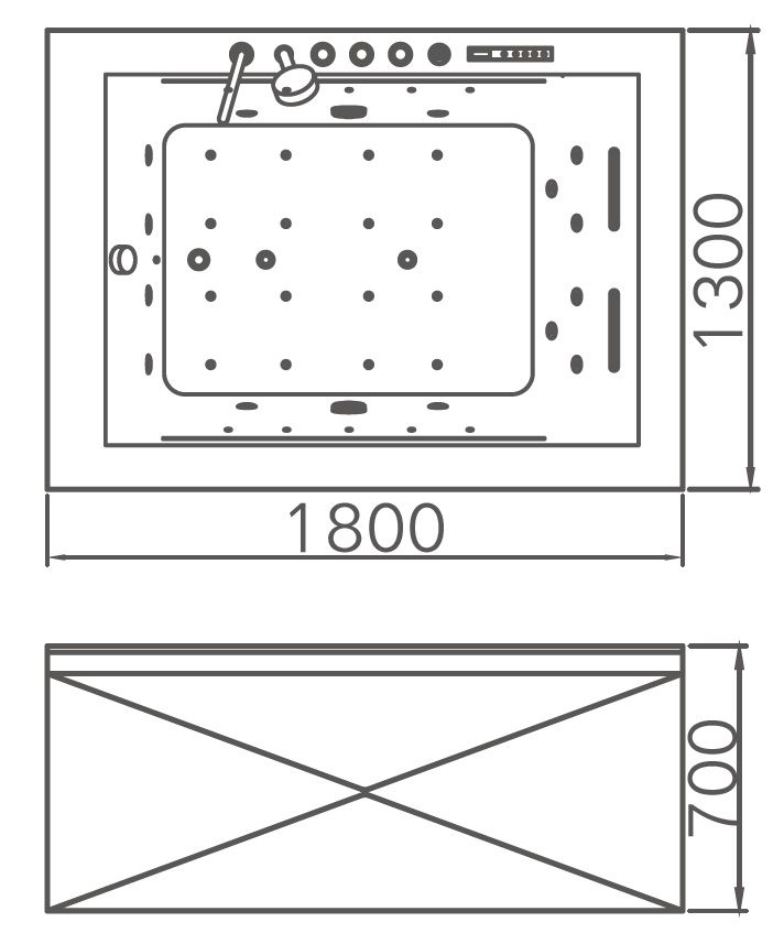 - Комплектация каскадный массаж, смеситель с изливом, душевая лейка