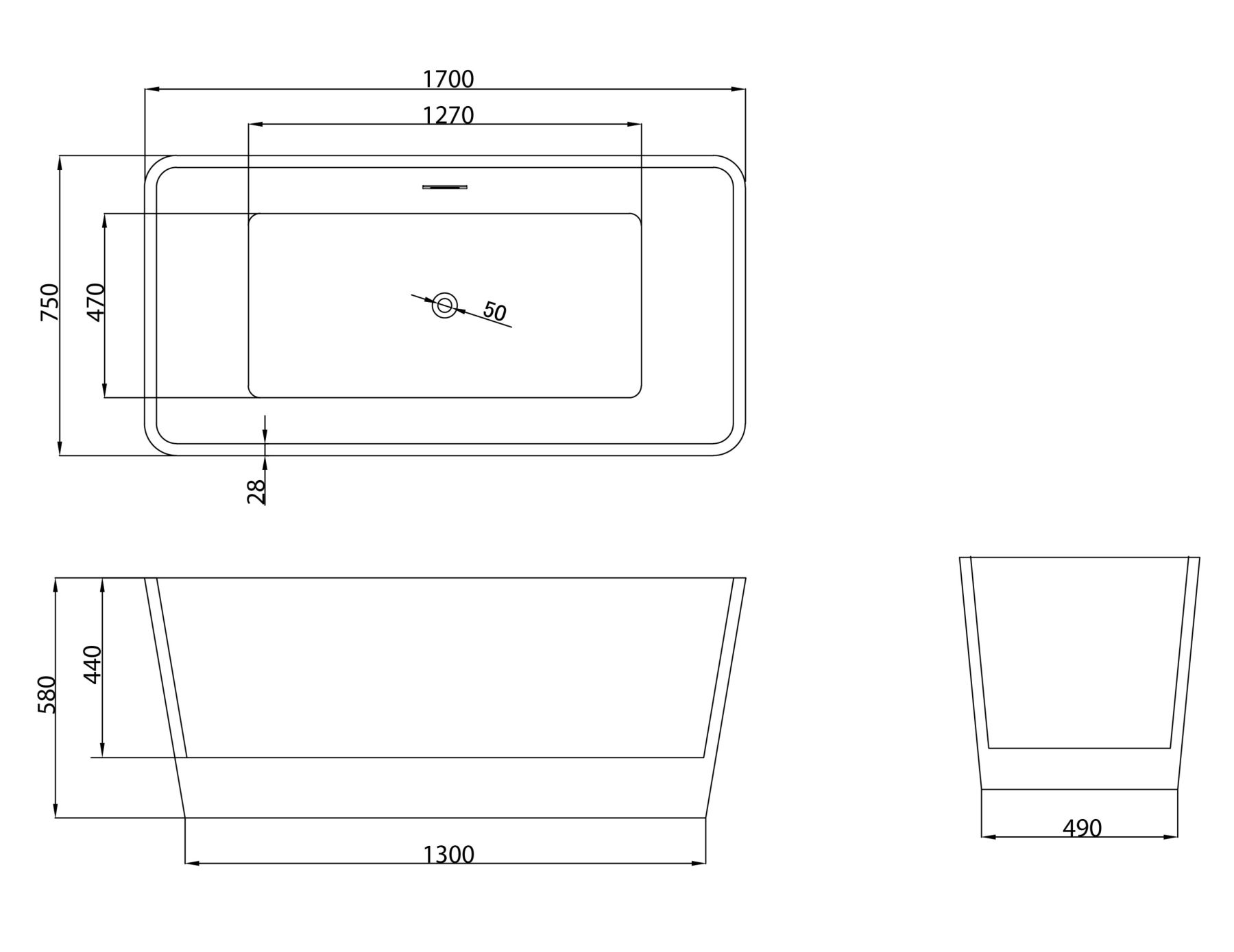 Стандартные размеры, см:170x75