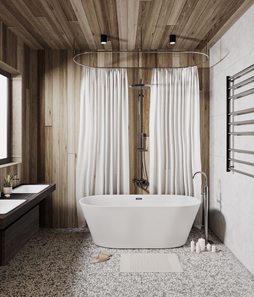 Ванна изготовлена из акрилового листа толщиной 5 мм, что обеспечивает прочность и долговечность изделия. Акриловый материал также приятен на ощупь и сохраняет тепло воды на длительное время, создавая комфорт при принятии ванны. Ванна выполнена в белом матовом цвете. Дополнительно, данная ванна обладает антибактериальным покрытием, которое предотвращает размножение бактерий и обеспечивает гигиеничность использования. Усиленный каркас ванны обеспечивает стабильность и надежность конструкции, что позволяет использовать ванну без опасений и сомнений. Четырехслойная армировка ванной усиливает ее прочность и структурную целостность, что делает ее стойкой к воздействию внешних факторов и повышает ее долговечность. Эта отдельностоящая ванна сочетает в себе функциональность, надежность и эстетическое привлекательность, создавая идеальное пространство для релаксации и ухода за собой в вашей ванной комнате.