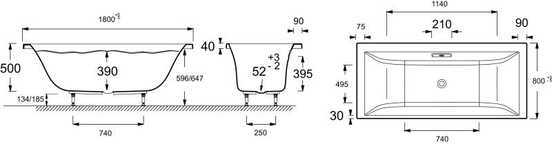 Смягченные углы с внутренней стороны чаши ванны облегчают уход.РАЗМЕРЫ :180 x 80 x 50 см