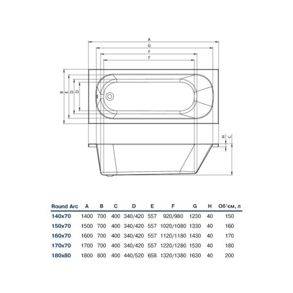Акриловая ванна Koller Pool Round Arc ROUNDARC150X70 150х70Продукция Koller Pool сочетает в себе новейшие материалы, превосходную эргономику и стильный современный дизайн.-100% литьевой однородный акрил ""Lucite"" 5 мм (Англия)